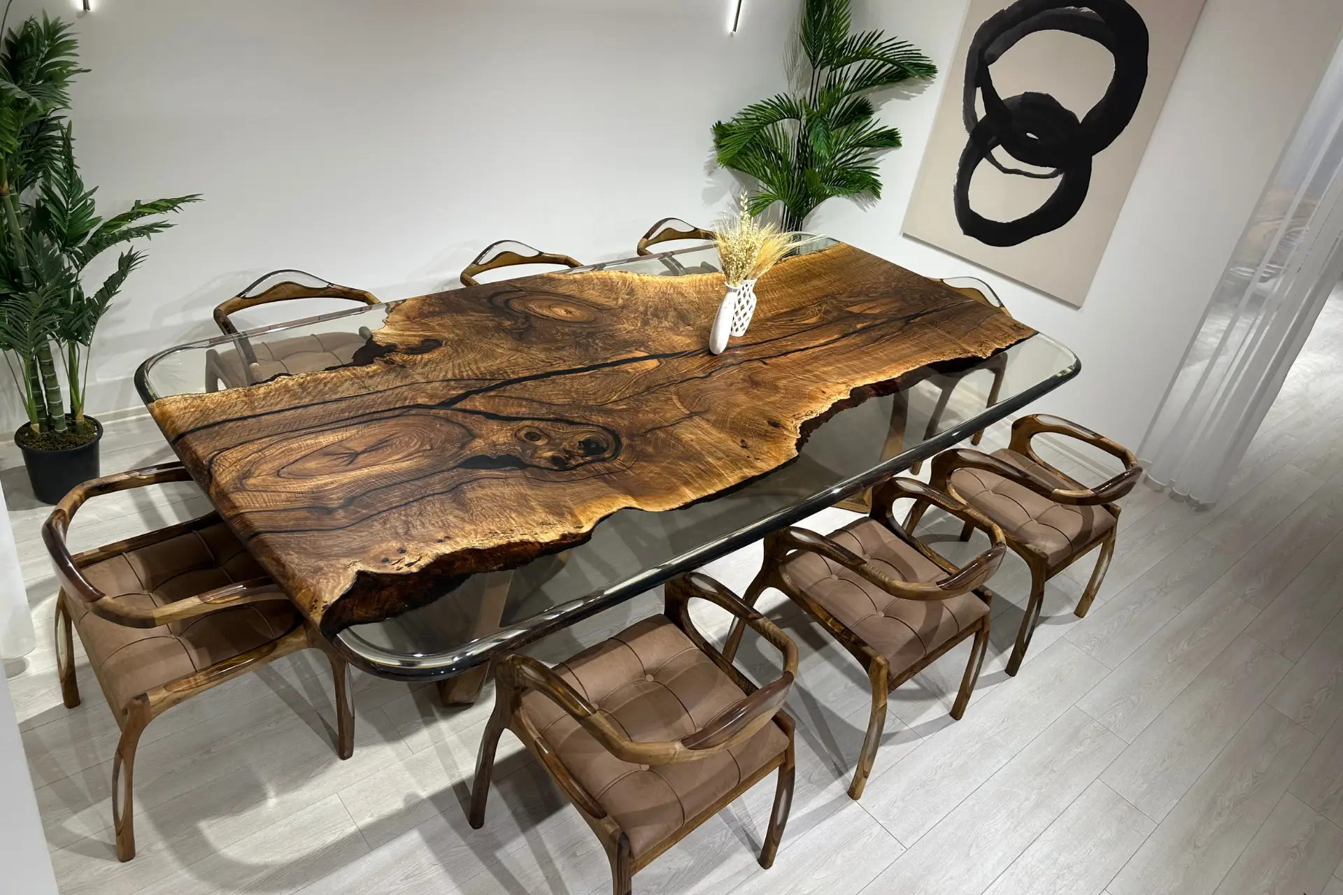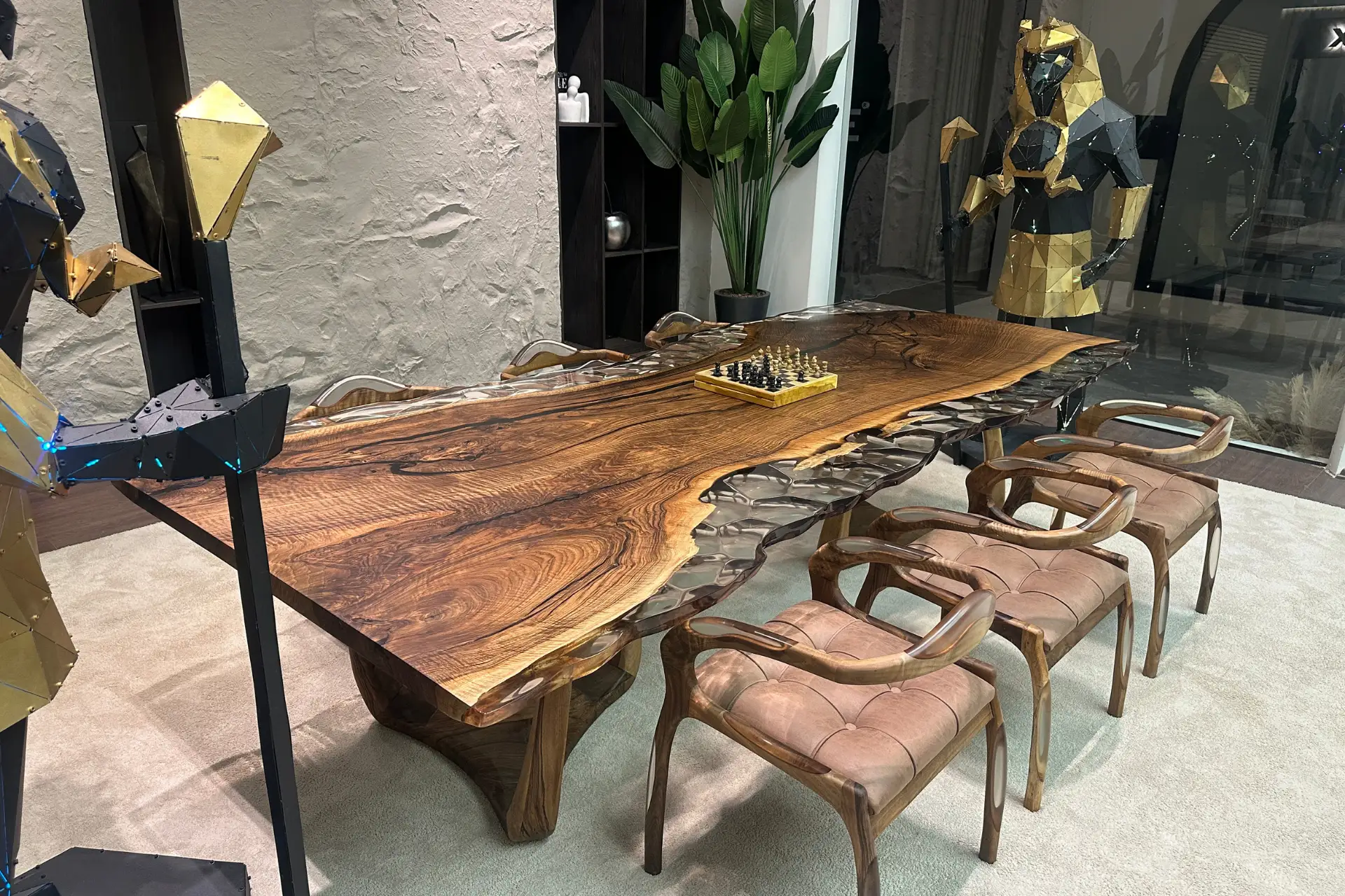 Gangza Home specializes in handmade epoxy tables, coffee tables, and custom wood furniture crafted mainly from walnut and olive wood. They combine natural materials with modern design to create unique pieces.